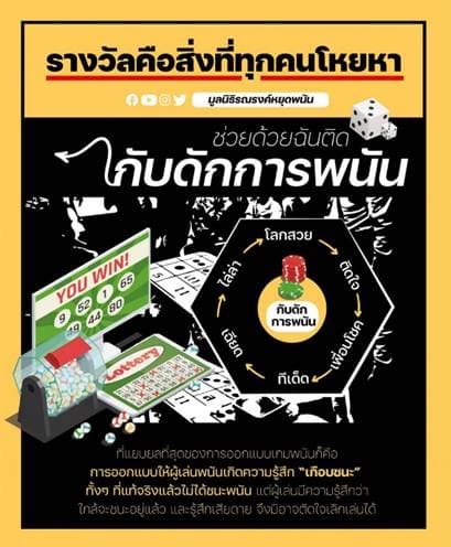 คุณสุจิตรา ฝาวสันเทียะ หรือ “คุณแอร์” ผู้จัดการมูลนิธิรณรงค์หยุดพนันเล่าให้ฟังว่า มูลนิธิฯ