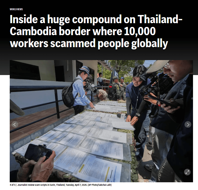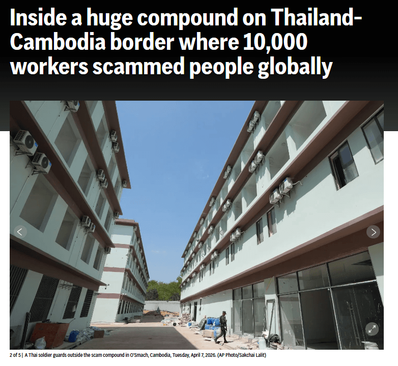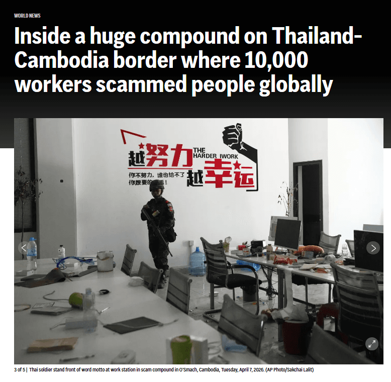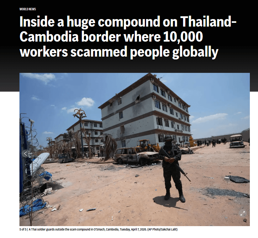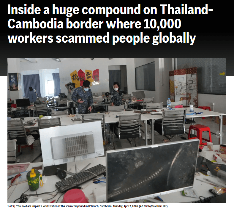 สำนักข่าว Next News รายงานว่าเมื่อวันที่ 7 เมษายนที่ผ่านมา สำนักข่าวเอพีได้เผยแพร่ปฏิบัติการณ์ของกองทัพไทย ซึ่งได้บุกเข้าไปยังศูนย์หลอกลวงทางออนไลน์ขนาด "อุตสาหกรรม" ที่ใหญ่โตอย่างไม่เคยมีมาก่อน บริเวณชายแดนกัมพูชา-ไทย ในเขตโอสมัช ของกัมพูชา ซึ่งการค้นพบครั้งนี้เผยให้เห็นถึงขนาดและระดับความซับซ้อนของขบวนการหลอกลวงที่กำลังแพร่ขยายไปทั่วภูมิภาคเอเชียตะวันออกเฉียงใต้