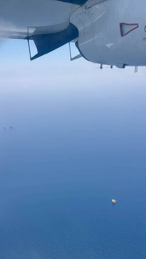โฆษกกองทัพเรือกล่าวอีกว่า เพื่อยืนยันข้อเท็จจริงให้เป็นที่ประจักษ์กองทัพเรือได้สั่งการให้จัดอากาศยานขึ้นทำการบินลาดตระเวนตรวจสอบในพื้นที่ดังกล่าว โดยเมื่อวันที่ 5 เมษายน 2569 เวลา 12:12 - 14:51 น. อากาศยานของ ทรภ.2 ได้ขึ้นบินลาดตระเวนบริเวณกลุ่มแท่นผลิตฯ และตรวจพบเรือประมงจำนวน 23 ลำ กำลังทำการประมงตามปกติในพื้นที่ และเรือสินค้า 8 ลำ กำลังเดินเรือตามเส้นทางปกติ ไม่มีการจอดเรือในลักษณะต้องสงสัยแต่อย่างใด สรุปได้ว่าไม่พบการรวมกลุ่มของเรือจำนวนมากผิดปกติในพื้นที่ หรือมีลักษณะเป็นเรือบรรทุกน้ำมันนับร้อยลำตามที่ปรากฏในข่าว